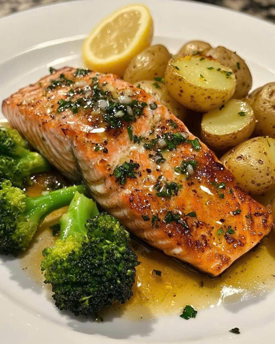 Cá hồi áp chảo bơ tỏi là món ăn đơn giản nhưng tinh tế, phù hợp cho bữa tối tại nhà hoặc các dịp đặc biệt. Với phi lê cá hồi tươi, áp chảo vàng mặt, kết hợp sốt bơ tỏi thơm lừng, món ăn giữ được độ mềm mọng, vị ngọt tự nhiên và hương thơm hấp dẫn. Kết hợp cùng salad rau xanh, khoai tây nướng và rượu vang trắng nhẹ, bạn sẽ có một bữa tối ngon, sang trọng và dễ thực hiện, khiến cả gia đình hài lòng và ghi nhớ hương vị đặc trưng.