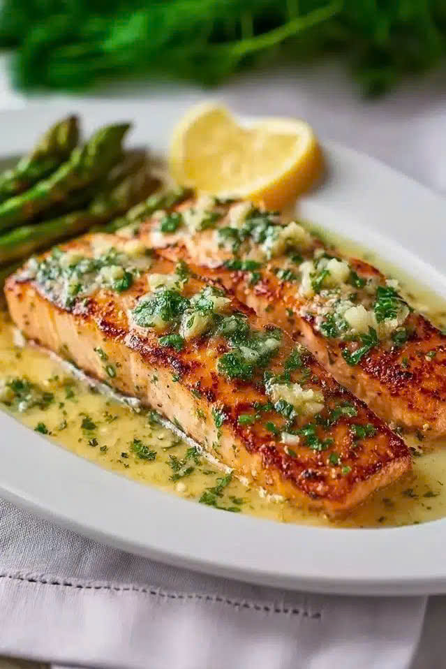 Cá hồi sốt bơ tỏi mềm mịn, vàng óng, thơm lừng là món ăn đơn giản nhưng tinh tế, lý tưởng cho bữa tối tại nhà hoặc các dịp đặc biệt. Với phi lê cá hồi dày, săn chắc, áp chảo vừa đủ và sốt bơ tỏi thơm lừng, món ăn giữ được độ mềm mượt, vị ngọt tự nhiên và hương thơm đặc trưng. Kết hợp cùng rau củ hấp, khoai tây và rượu vang trắng nhẹ, bạn sẽ có một bữa ăn ngon, sang trọng và dễ dàng thực hiện, khiến cả gia đình hoặc khách mời hài lòng và ghi nhớ hương vị.