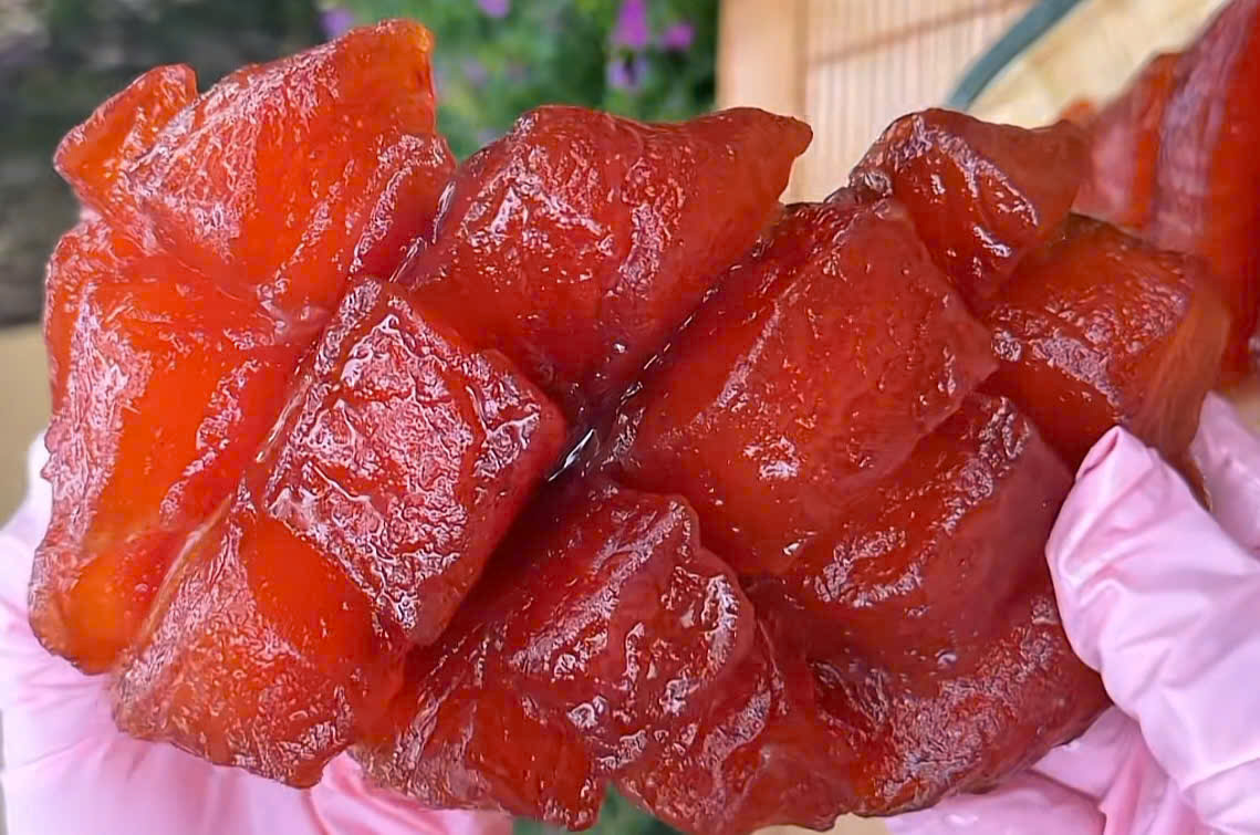 - Cách truyền thống – ướp muối đường, sấy/xông khói nhẹ, phủ glaze ngọt.