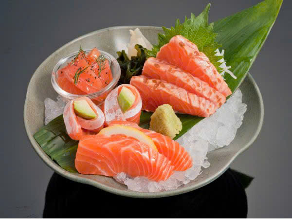 - Sashimi: Cá hồi thái lát mỏng, thưởng thức nguyên vị cá tươi mà không cần cơm.